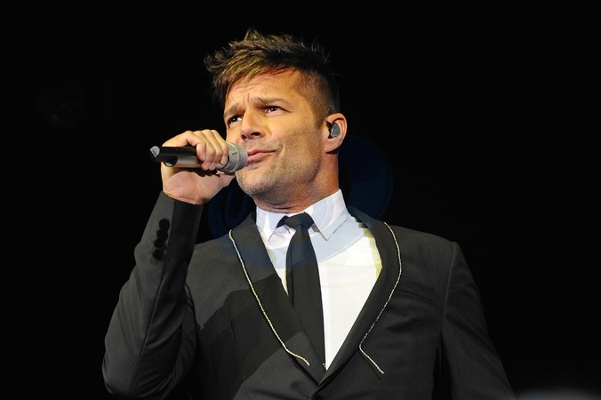Ricky Martin w garniturze i krawacie na koncercie w Londynie
