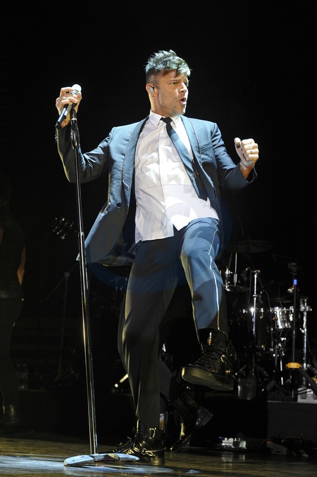 Ricky Martin w garniturze i krawacie na koncercie w Londynie
