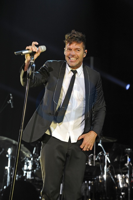 Ricky Martin w garniturze i krawacie na koncercie w Londynie