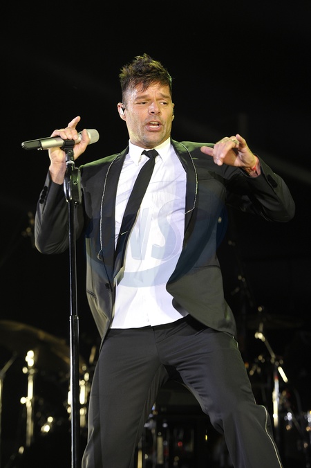 Ricky Martin w garniturze i krawacie na koncercie w Londynie