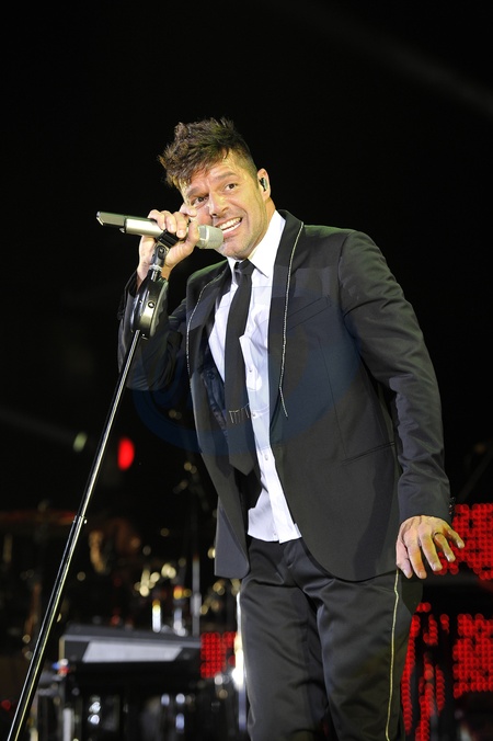 Ricky Martin w garniturze i krawacie na koncercie w Londynie
