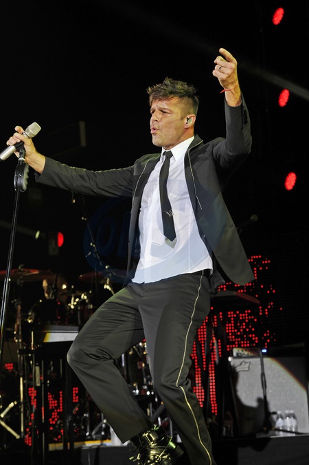 Ricky Martin w garniturze i krawacie na koncercie w Londynie