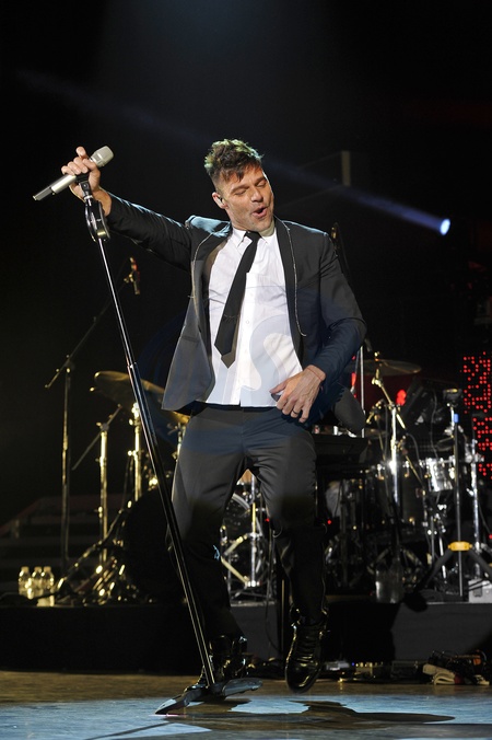 Ricky Martin w garniturze i krawacie na koncercie w Londynie