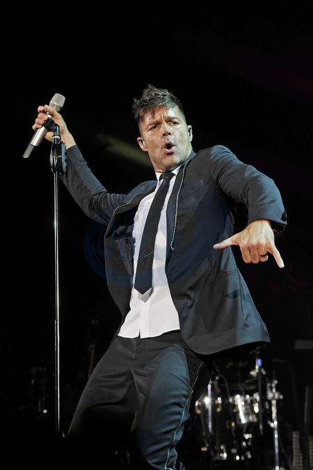 Ricky Martin w garniturze i krawacie na koncercie w Londynie