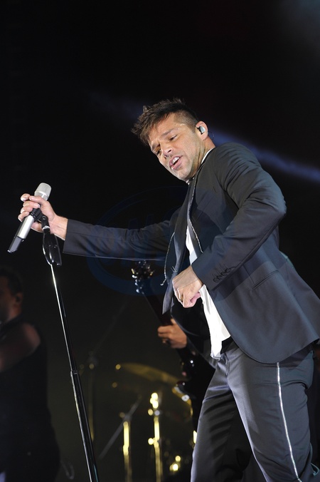 Ricky Martin w garniturze i krawacie na koncercie w Londynie
