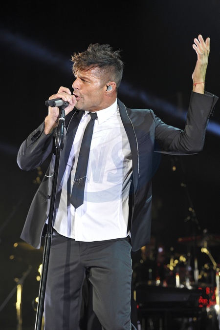 Ricky Martin w garniturze i krawacie na koncercie w Londynie
