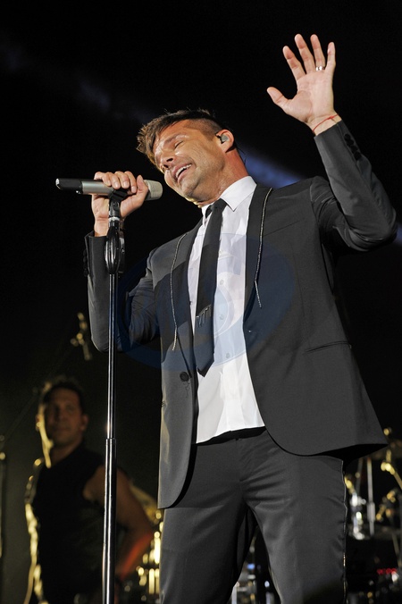 Ricky Martin w garniturze i krawacie na koncercie w Londynie