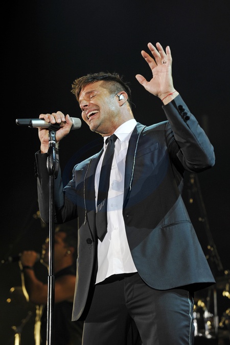 Ricky Martin w garniturze i krawacie na koncercie w Londynie