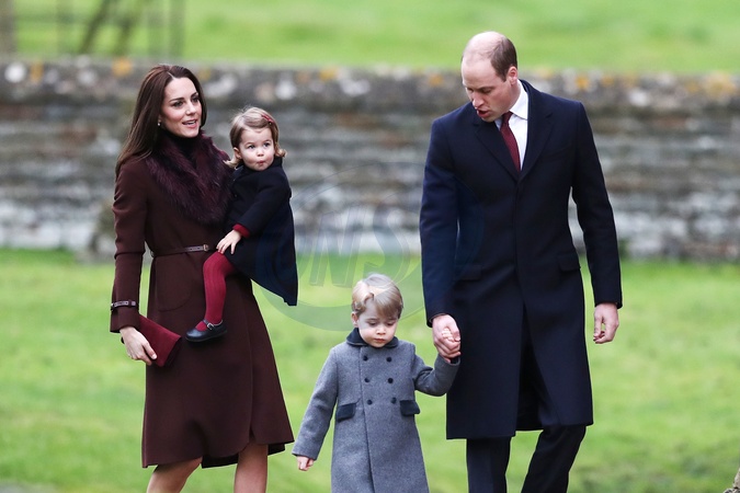 Ksiaze William i Kate z dziecmi wracaja z kosciola