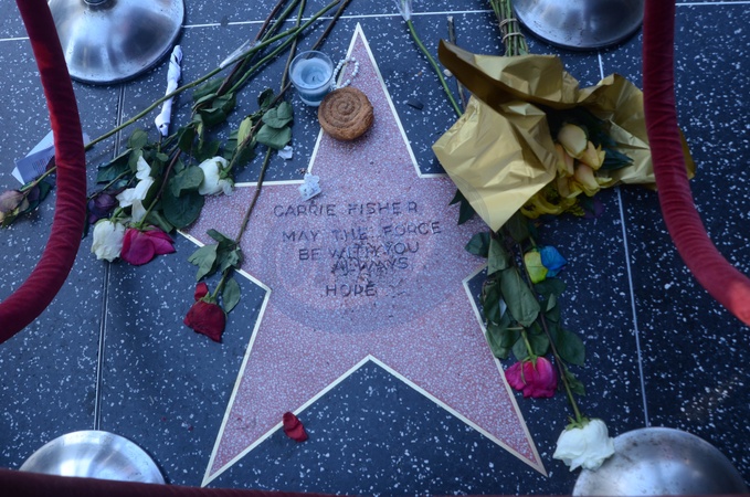 Kwiaty przy hollywodzkiej gwiezdzie Carrie Fisher