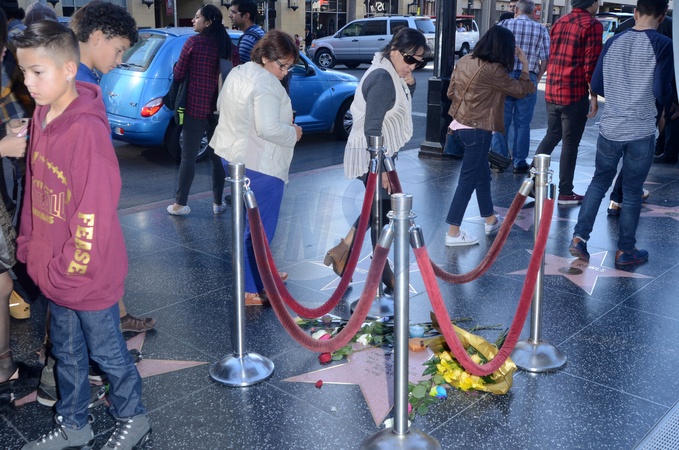 Kwiaty przy hollywodzkiej gwiezdzie Carrie Fisher