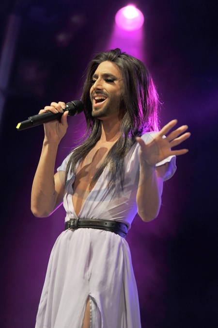 Conchita w glebokim dekolcie na scenie w Manchesterze