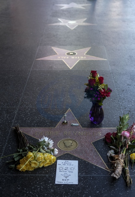 Kwiaty przy hollywodzkiej gwiezdzie Debbie Reynlods