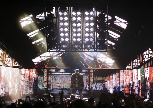 Chris Brown w bluzie Tommy na koncercie w Amsterdamie