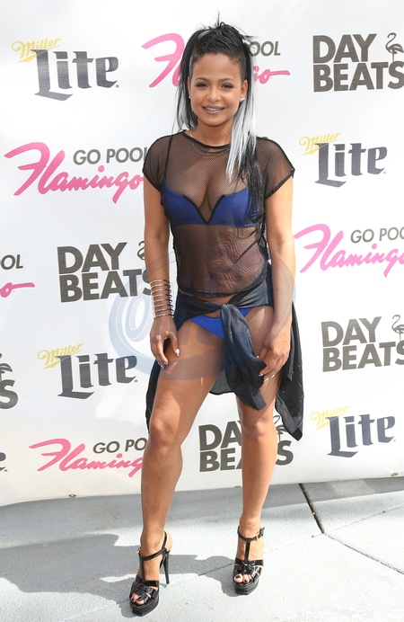 Christina Milian w siateczkowej bluzce i majteczkach