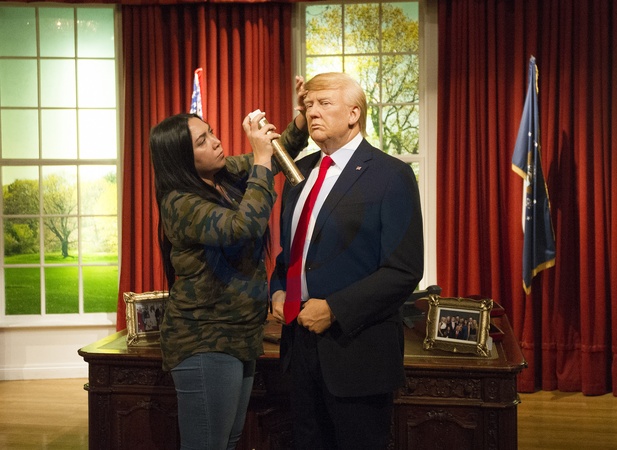 Donald Trump - malowanie, lakierowanie wlosow..... figura w muzeum Madame Tussauds