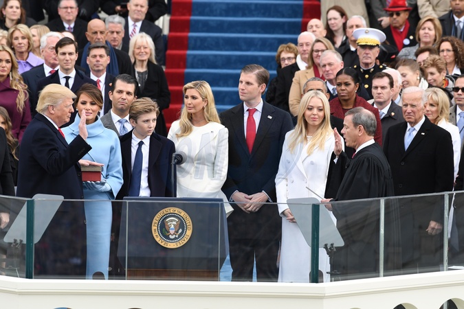 Donald Trump, Melania Trump, Ivanka Trump, Donald Trump Jr. Barron Trump, Eric Trump, Tiffany Trump, John Roberts
