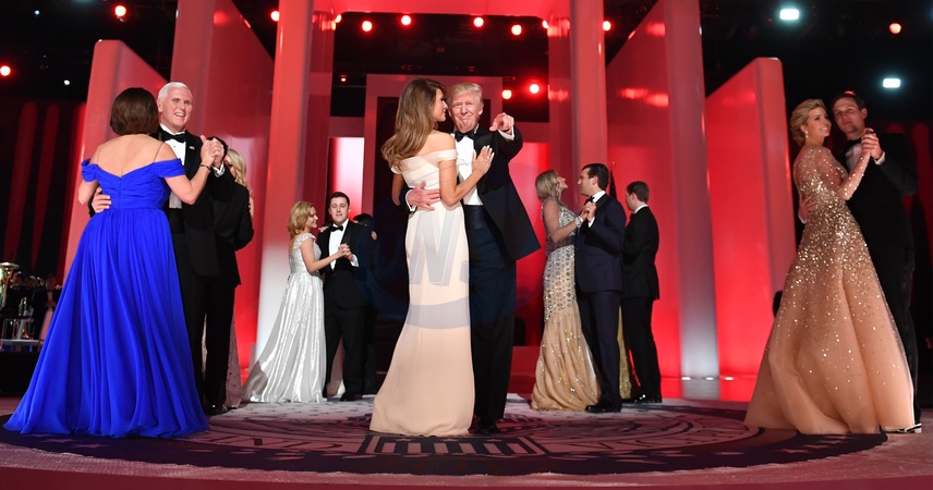 Donald Trump, Melania Trump, Mike Pence and Karen Pence, Ivanka Trump i jej maz Jared Kushner