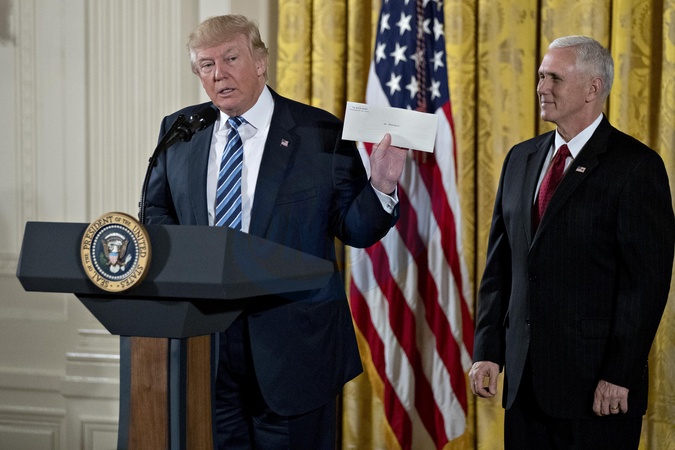 Donald Trump - spotkanie ze wpolpracownikami w Bialym Domu