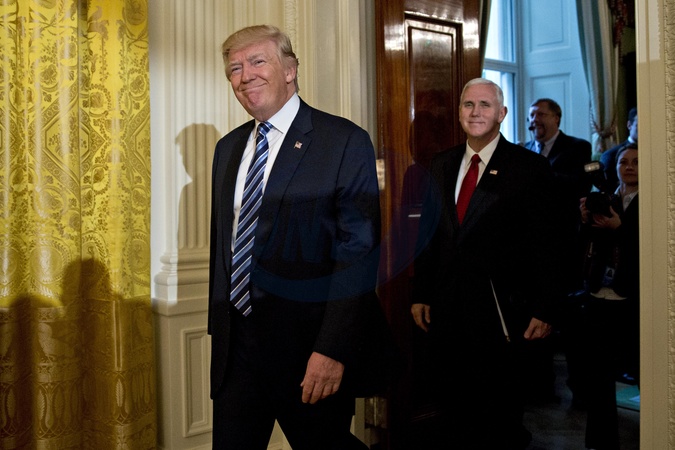 Donald Trump - spotkanie ze wpolpracownikami w Bialym Domu