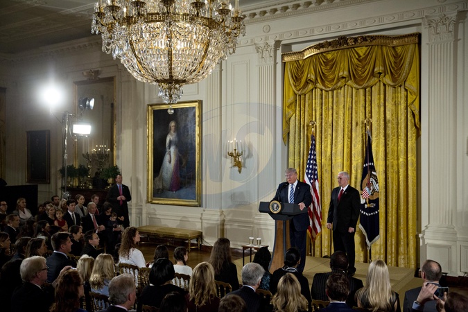 Donald Trump - spotkanie ze wpolpracownikami w Bialym Domu