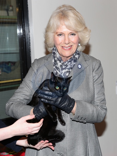 Ksiezna Camilla ze swoim pieskiem w schronisku dla psow i kotow