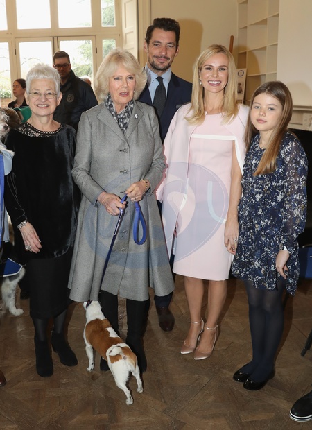 Ksiezna Camilla ze swoim pieskiem w schronisku dla psow i kotow