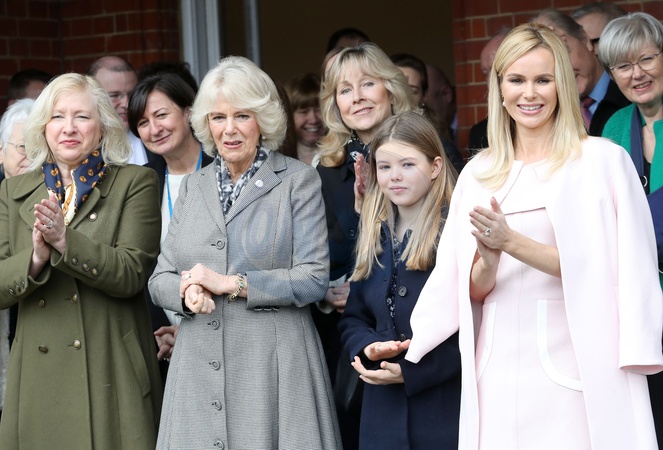 Ksiezna Camilla ze swoim pieskiem w schronisku dla psow i kotow