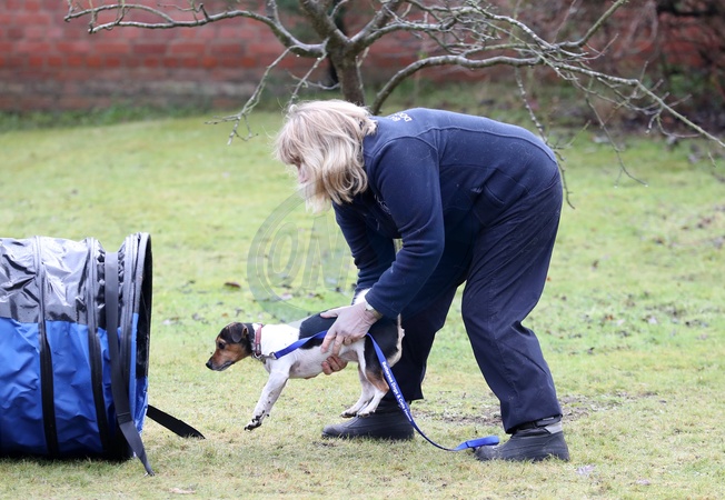 Ksiezna Camilla ze swoim pieskiem w schronisku dla psow i kotow