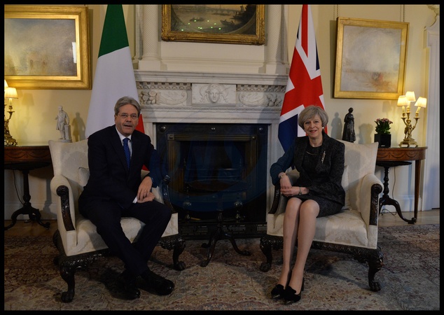 Theresa May na spotkaniu z wloskim premierem Paolo Gentiloni