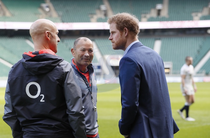 Ksiaze Harry na treningu England Rugby Squad