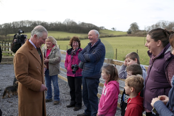Ksiaze Karol podczas wizyty w White Park Cattle
