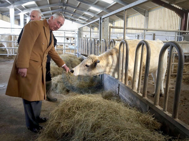 Ksiaze Karol podczas wizyty w White Park Cattle
