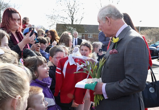 Ksiaze Karol podczas wizyty w White Park Cattle