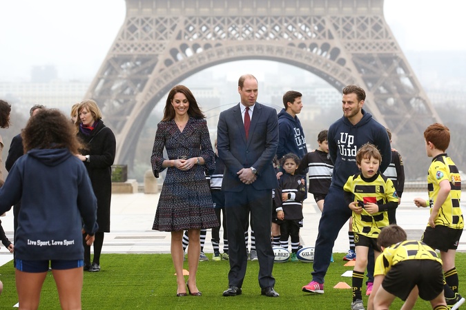 Ksiaze William i Kate spotkali sie z malymi fanami rugby, Paryz