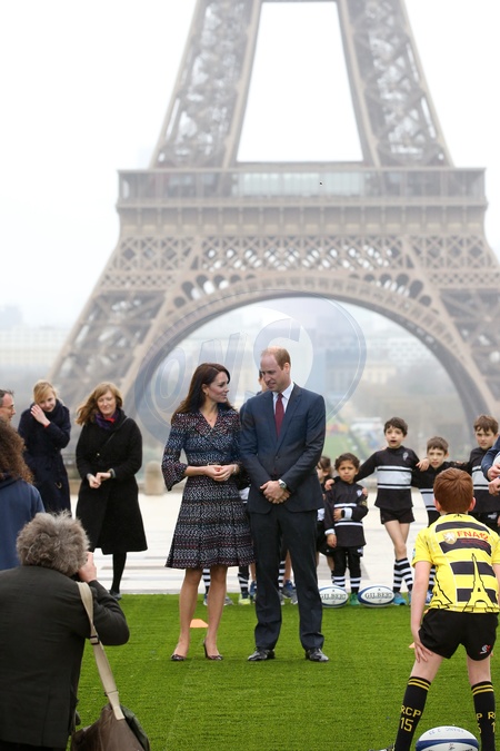 Ksiaze William i Kate spotkali sie z malymi fanami rugby, Paryz