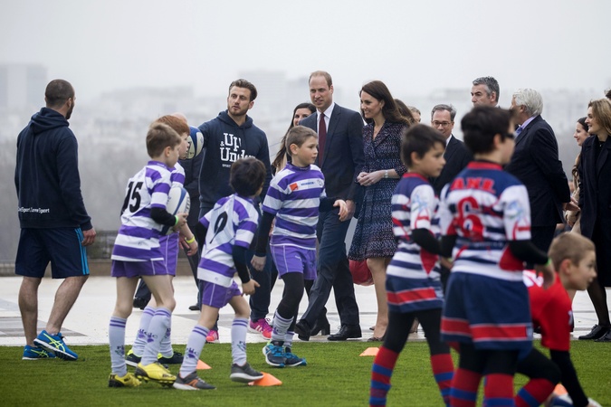 Ksiaze William i Kate spotkali sie z malymi fanami rugby, Paryz