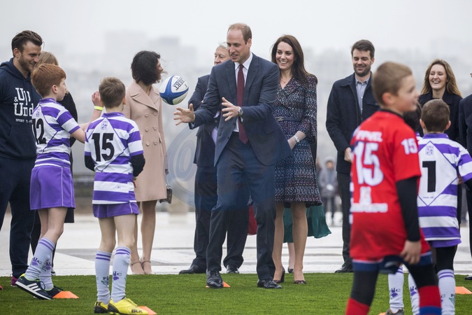 Ksiaze William i Kate spotkali sie z malymi fanami rugby, Paryz