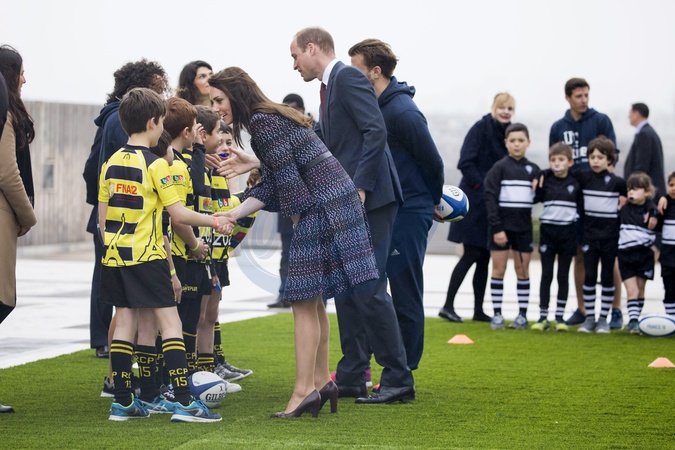 Ksiaze William i Kate spotkali sie z malymi fanami rugby, Paryz