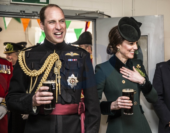 Ksiaze William i ksiezna Kate pija piwo Guiness z zolnierzami z Irish Guards