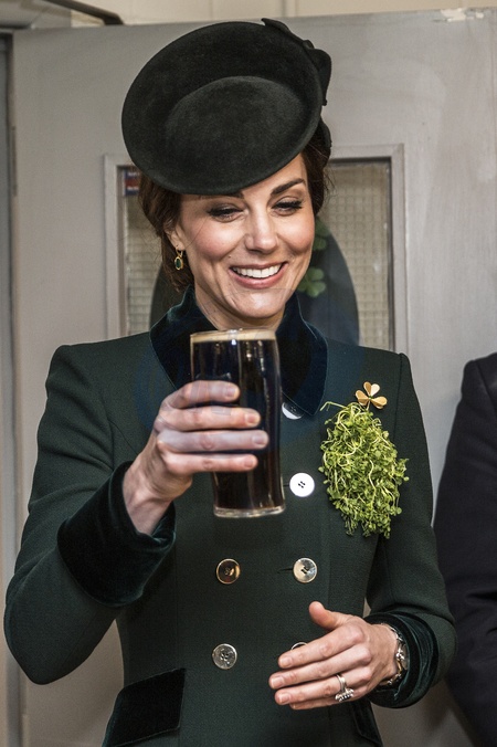 Ksiaze William i ksiezna Kate pija piwo Guiness z zolnierzami z Irish Guards