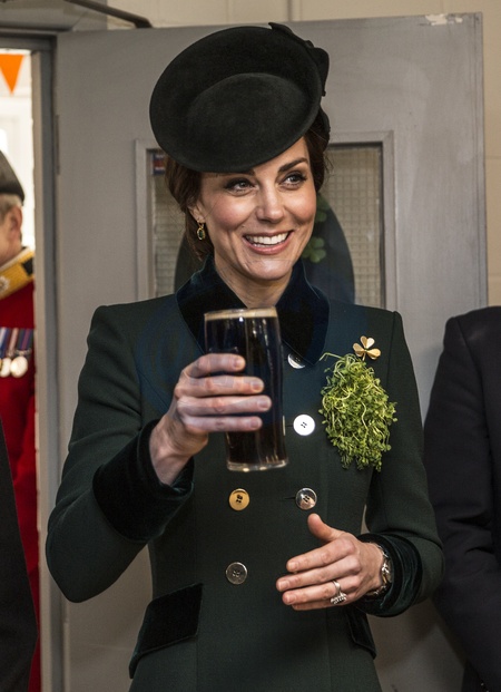Ksiaze William i ksiezna Kate pija piwo Guiness z zolnierzami z Irish Guards