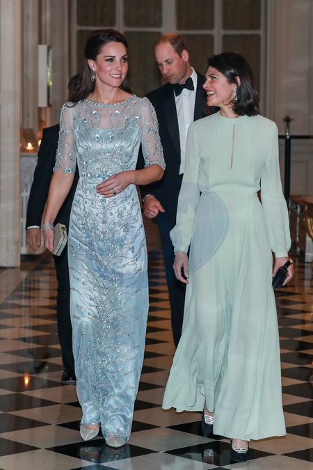Ksiezna Kate w blekitnej sukni na kolacji w ambasadzie