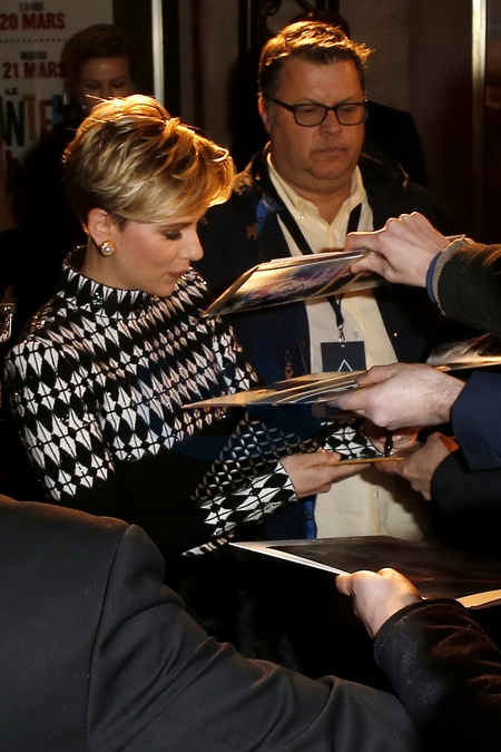 Scarlett Johansson w futrzanej spodnicy na premierze Ghost in the Shell