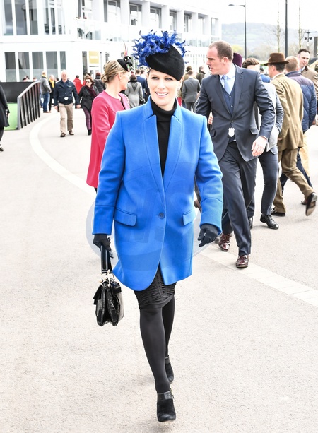 Zara Phillips Tindall w niebieskim plaszczyku, Gold Cup Day