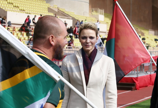 Ksiaze Albert II z zona Charlene na turnieju rugby