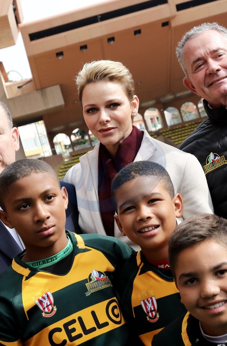 Ksiaze Albert II z zona Charlene na turnieju rugby