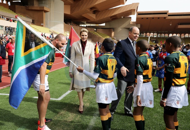 Ksiaze Albert II z zona Charlene na turnieju rugby