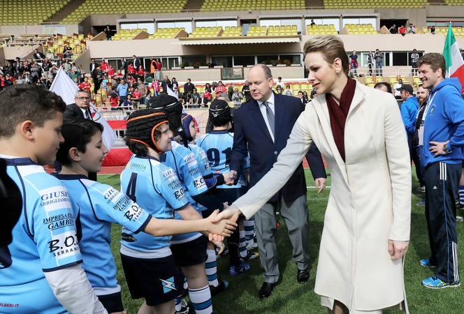 Ksiaze Albert II z zona Charlene na turnieju rugby