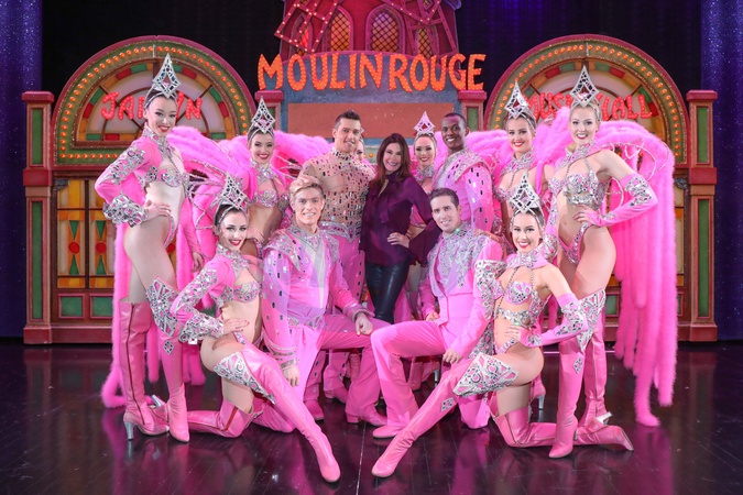 Teri Hatcher pozuje z tancerzami z Moulin Rouge w Paryzu